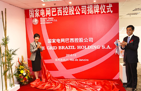國家電網(wǎng)公司副總經(jīng)理舒印彪,國家電網(wǎng)國際發(fā)展有限公司總經(jīng)理孫金平、中國駐里約總領(lǐng)事陳小玲、國家電網(wǎng)公司有關(guān)部門和單位的領(lǐng)導(dǎo)、國家電網(wǎng)巴西控股公司巴西員工代表,以及中國國家開發(fā)銀行巴西工作組、中石化巴西公司、南非標(biāo)準(zhǔn)銀行、PN律師所、匯豐巴西銀行、羅蘭.貝格等公司代表參加了儀式。舒印彪副總經(jīng)理和陳小玲總領(lǐng)事共同為國家電網(wǎng)巴西控股公司揭牌。