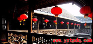 盧氏鹽商住宅坐落于康山文化園旁,臨街朝南的大門氣派而考究。門楣上的磚雕異常精美,雖經(jīng)滄桑歲月,但仍可辨出磚雕上神態(tài)各異的人物活潑靈動,栩栩 如生。置身其中,淮海廳、蘭馨廳、涵碧廳、怡情樓,廳廳相連,廳堂闊大,可設(shè)宴百席,氣派非凡。漫步宅內(nèi),從第一進到第四進,天井兩側(cè)分布著小型花園, 假山、花草、布局風(fēng)格各異,構(gòu)思精巧。深入后院,意園里盔頂六角亭、石船舫、水池等相映成趣。盧宅前后進深達百余米,占地面積6100多平方米,是反映 揚州鹽文化的重要古跡。從外表看古宅青磚黛瓦與一般住宅無異,但置身其中,一種“藏富不露”的恢宏之氣撲面而來。經(jīng)過修復(fù),不但古建筑獲得了新生,往日 鹽商的富庶也得以重現(xiàn)。