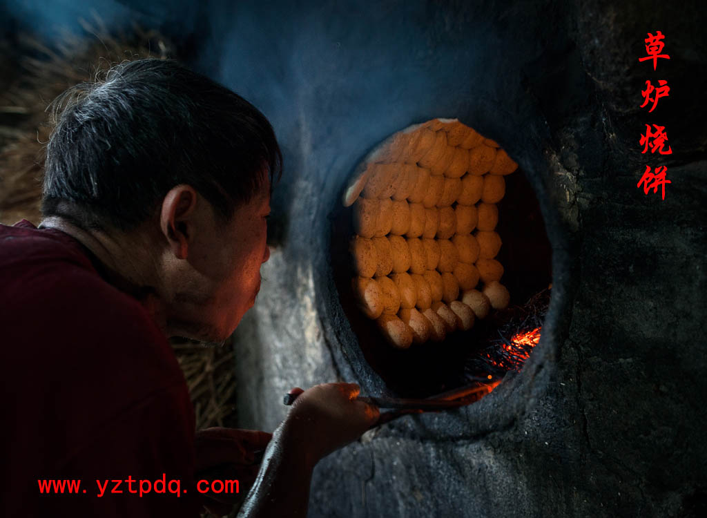 “草爐燒餅”是如何做出來的?江師傅的老伴負(fù)責(zé)做燒餅坯,發(fā)酵好的面揉成圓形餅坯,用搟面杖搟開,刷上料糖,撒上芝麻。江師傅先用水濕濕手,快速地將一只只餅坯貼上爐,燃起草料,爐膛內(nèi)通紅,大約一杯茶的工夫,餅坯漸漸變厚,白面餅漸變烤黃。“烤一爐餅要近60分鐘,草料燃完就落餅了。”