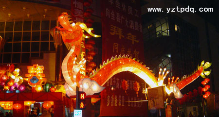 “鬧花燈”在揚(yáng)州歷史悠久,清代惺庵居士的《望江南百調(diào)》記載:“揚(yáng)州好,燈節(jié)慶元宵,絳蠟滿堂家宴集,金龍逐隊(duì)市聲囂,花鼓又高蹺”。家家戶戶張燈結(jié)彩,人們從事猜燈謎、歌舞等活動(dòng),不亦樂乎,元宵晚間常有四鄉(xiāng)的“舞龍”燈隊(duì),或進(jìn)城鎮(zhèn)參加“燈會(huì)”比藝,或至各村莊巡回表演,也有耍獅子燈和馬燈、蕩湖船、打花鼓、踩高蹺,跳“河歪(河蚌)精”、跳“小人高肩”舞等見于燈隊(duì)中,沿途若有人燃放鞭炮表示歡迎,則必演上一段,熱烈氣氛常至深夜!